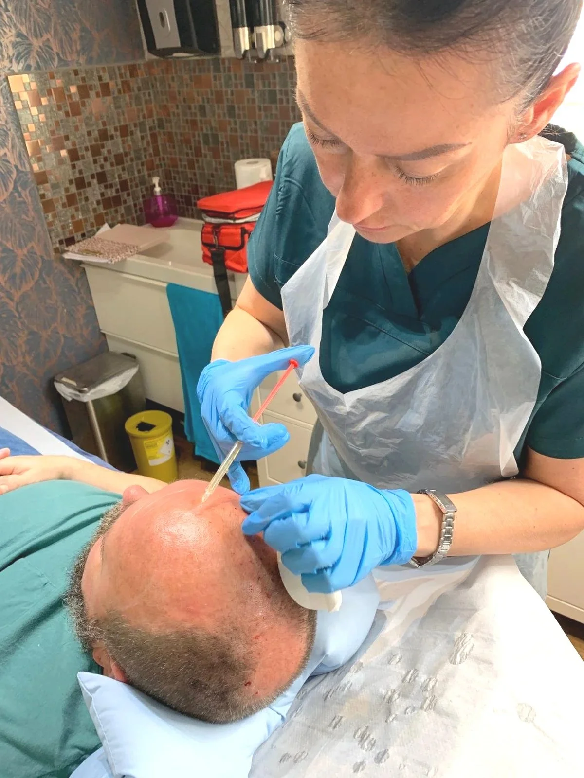 At Infinity Hair Loss Clinic, we use the Meso PRP technique to maximise results. This combines microneedling with PRP injections, allowing plasma to penetrate deeper into the scalp for stronger follicle stimulation.